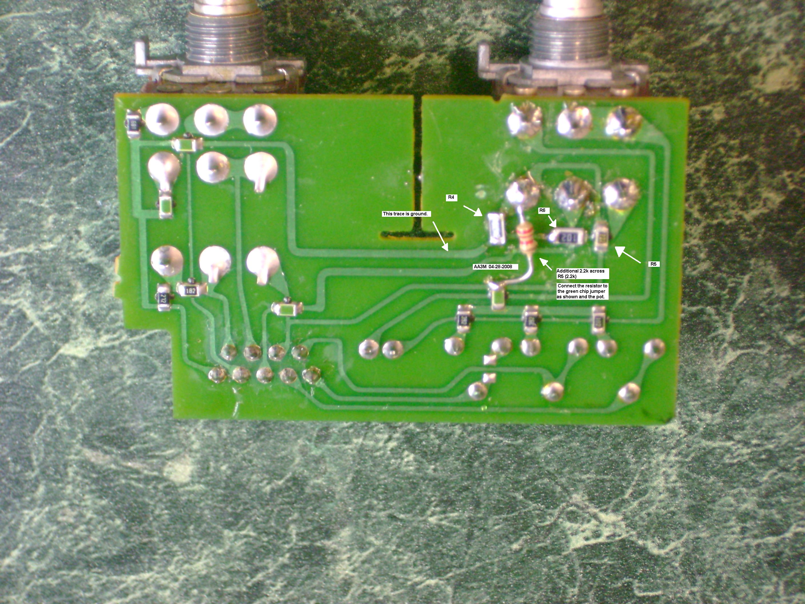 Pay close attention to the traces and where to tack the resistor. You may have to scroll right to see it.